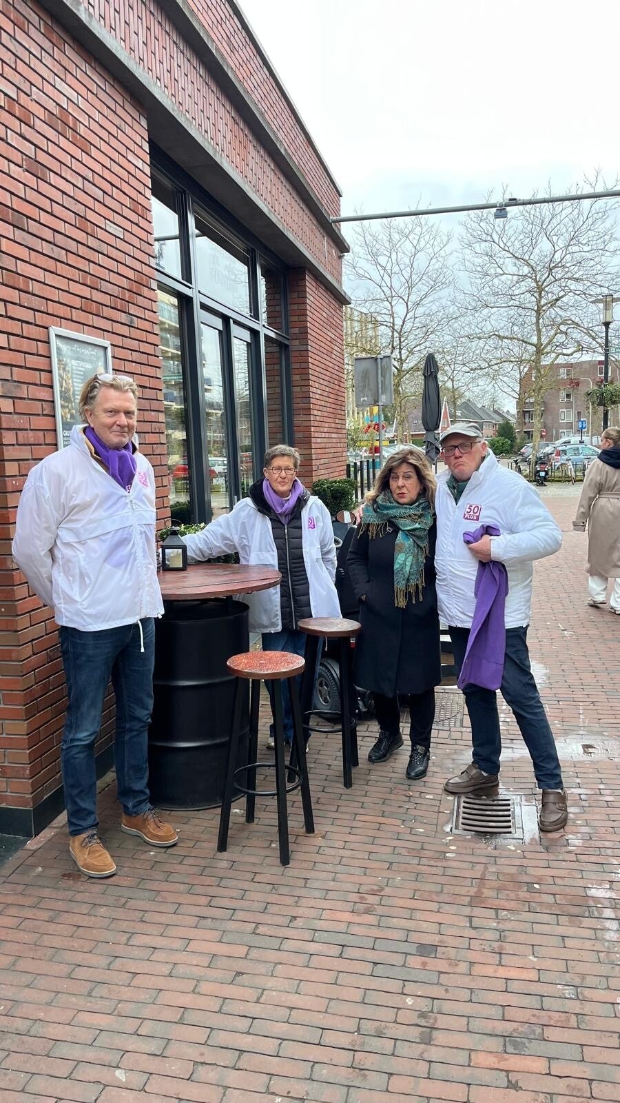 Om 09:00 uur s'morgens de stand opgebouwd en voorzien van folders, posters en info over onze plannen en ons programma. Het is waterkoud en nog rustig op straat. Langzamerhand komen ook de andere partijen met hun stands en wordt het een gezellige dynamiek van mensen in verschillende kleuren. Rond elven komt er meer winkelend publiek en al gauw raken we in gesprek met mensen van allerlei pluimage die graag wil weten war 50PLUS-Assen hun te bieden heeft. Een groot deel van de gesprekken gaan over ons ambitieuze woon- en groenplan voor het nieuw te ontwikkelen havengebied. De grote posters die we hebben opgehangen met daarop een impressie van wat er mogelijk is, spreken erg tot de verbeelding. Uiteraard vragen mensen ook naar onze oplossingen voor de onveilige situaties in het centrum en in de wijken en uiten hun zorgen over de wazige, voor de burgers, dure plannen van het onlangs gevormde minderheidskabinet op landelijk niveau. Al met al een leuke dag met waardevolle gesprekken met burgers van Assen en omstreken. Bijna het gehele team was aanwezig en we hebben veel reclame kunnen maken voor onze standpunten. Op naar woensdag!!